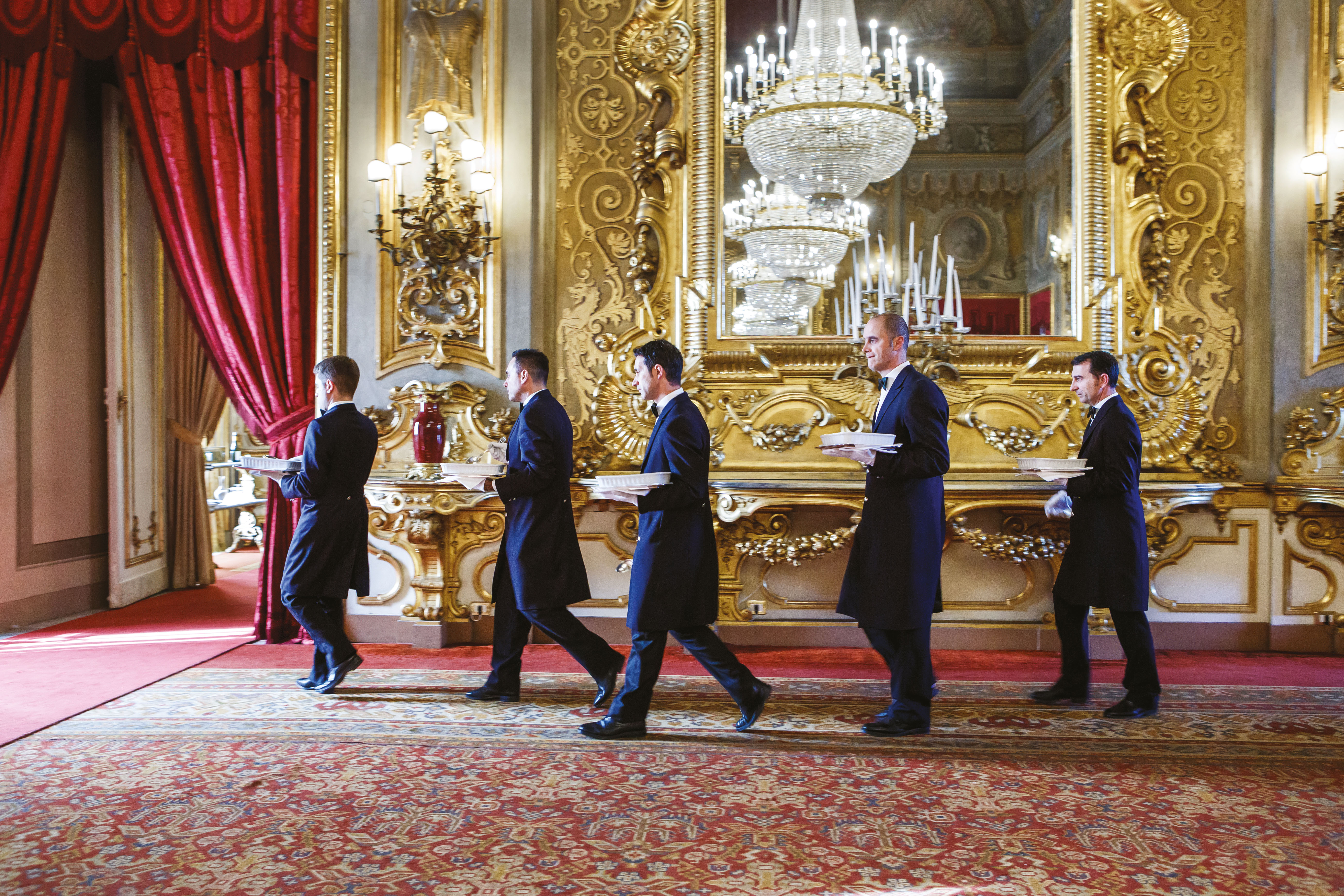 Iniziamo col dire che il Quirinale è l'unica istituzione italiana che ha una sua brigata di cucina. Questo gruppo, coordinato da Domenico Santamaria, Food & Beverage Manager, è composto da Fabrizio Boca, Executive Chef, e da numerosi camerieri, sommelier, di cui tanti giovanissimi, spesso appena usciti dagli istituti alberghieri di tutta Italia, che iniziano a lavorare qui grazie ai tirocini (una pratica voluta fortemente da Boca e Santamaria, e messa in pratica grazie al placet di Mattarella).